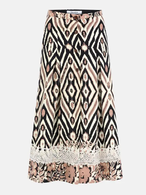 BlackBeige Printed Viscose-Cotton Taaga Skirt