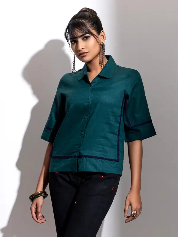 Green Textured Cotton Taaga Work Wear Top