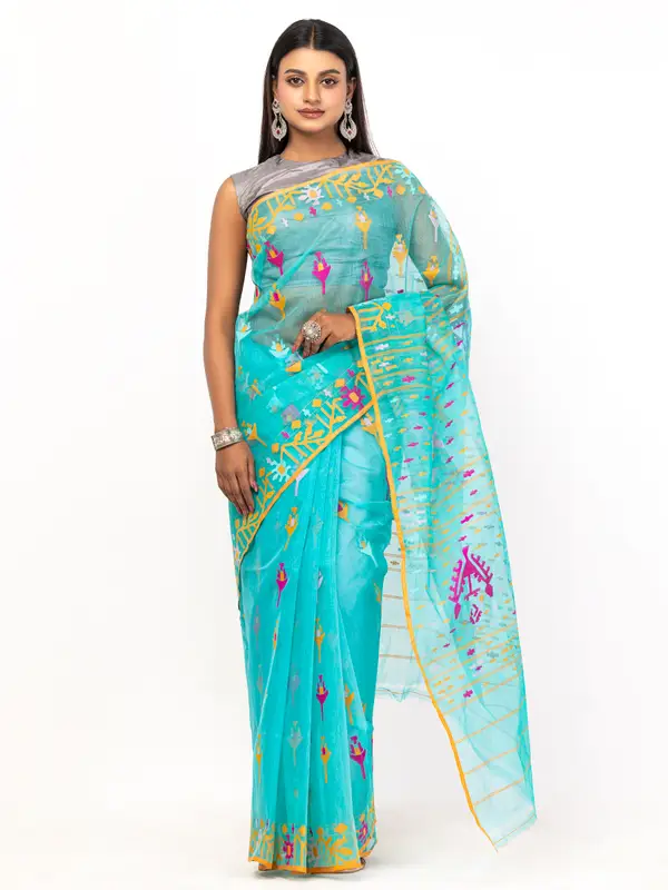 Be the first to review “Turquoise Half Silk Jamdani Saree” Cancel reply